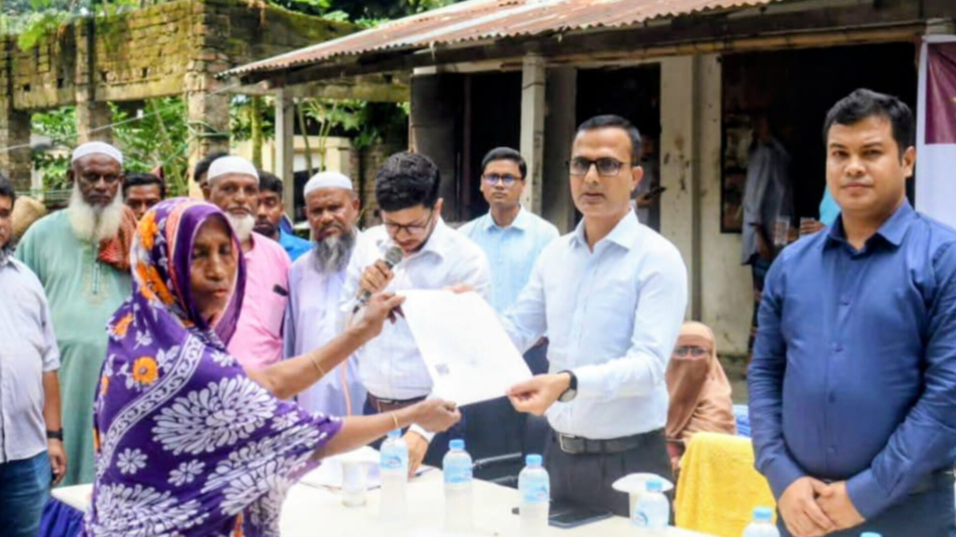 ঘোড়ামারা আশ্রয়ণ প্রকল্পের বন্দোবস্ত প্রাপ্তদের মাঝে নামজারি খতিয়ান এবং কবুলিয়ত বিতরণ