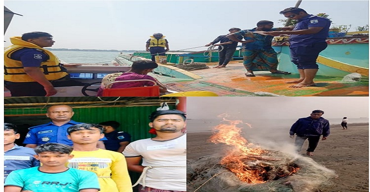 মেঘনায় নৌ পুলিশের অভিযান বাল্কহেডের বিরুদ্ধে ব্যবস্থা ও জাটকা ধরায় আটক ১৯ জেলে