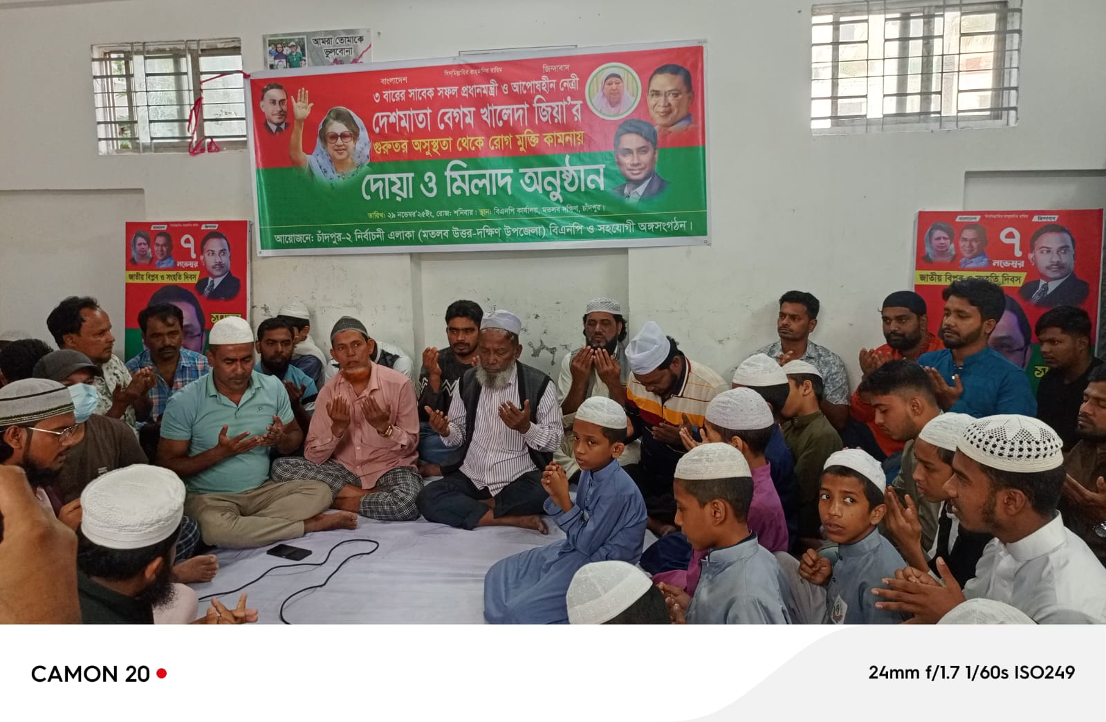 মতলব দক্ষিণে খালেদা জিয়ার দীর্ঘায়ু ও রোগ মুক্তি কামনায় দোয়া ও মিলাদ