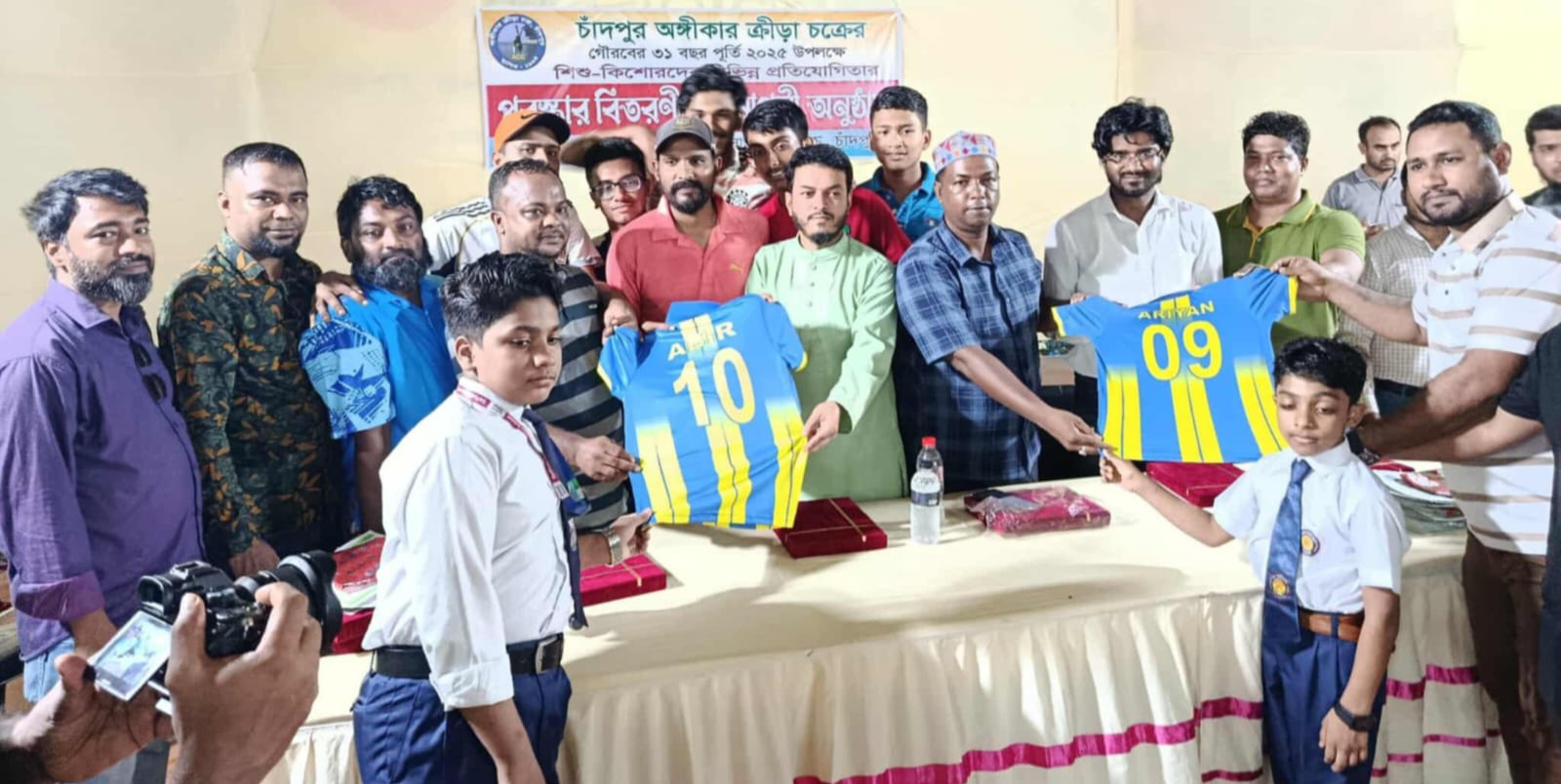 চাঁদপুর সোনালী অতীত ফুটবল একাডেমীর খুদে ফুটবলারদের মাঝে জার্সি ও ক্রীড়াসামগ্রী বিতরণ করলেন শেখ ফরিদ আহমেদ মানিক