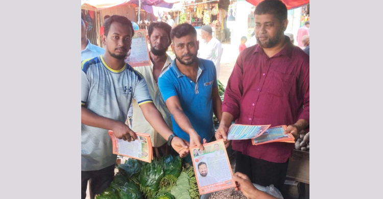 রূপসায় হুমায়ুন কবির বেপারীর পক্ষে ৩১ দফার লিফলেট বিতরণ