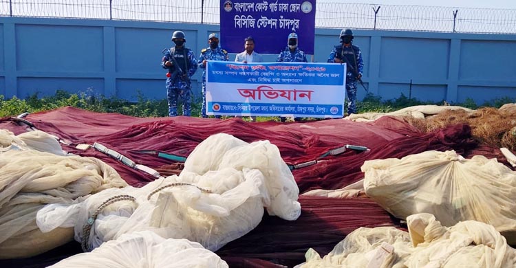 চাঁদপুর সদর উপজেলা মৎস্য বিভাগ ও কোস্টগার্ডের যৌথ অভিযানে মেঘনা নদী থেকে নিষিদ্ধ ১০ হাজার মিটার কারেন্ট জালসহ বিভিন্ন ধরনের জাল জব্দ করা হয়েছে। বুধবার (৭ জানুয়ারি ২০২৬) দুপুরে জব্দকৃত জাল কোস্টগার্ড চাঁদপুর স্টেশনে আগুনে পুড়িয়ে বিনষ্ট করা হয়। বিকেলে এসব তথ্য নিশ্চিত করেন সদর উপজেলা জ্যেষ্ঠ মৎস্য কর্মকর্তা মির্জা ওমর ফারুক।