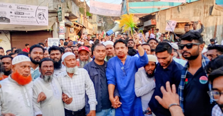 পুরাণবাজারে ধানের শীষের পক্ষে ঐক্যবদ্ধ নেতাকর্মীদের বিরাট নির্বাচনী মিছিল