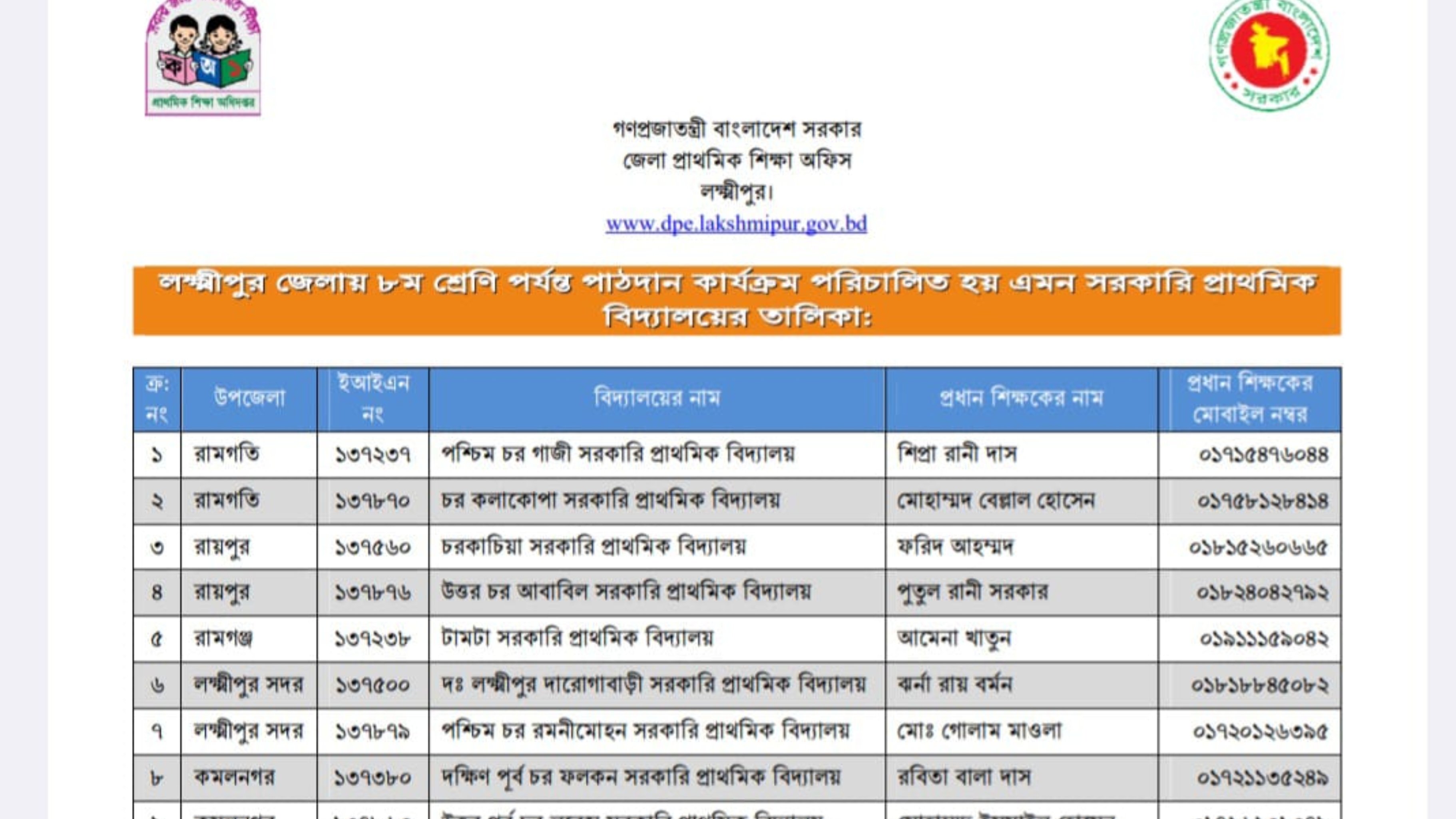 রোববার (৪ জানুয়ারি ২০২৫) রায়পুর উপজেলার চরকাছিয়া, উত্তর গাইয়ারচর, রামগঞ্জের টামটা ও সদরের পশ্চিম চররমনিমোহন সরকারি প্রাথমিক বিদ্যালয়ে গিয়ে ৬ষ্ঠ শ্রেণীতে শিক্ষার্থী ভর্তি করার সত্যতা পাওয়া যায়। রায়পুরে দুটি, সদরে দুটি, রামগঞ্জে একটি, কমলনগরে দুটি ও রামগতি উপজেলায় দুটি নিম্নমাধ্যমিক সরকারি প্রাথমিক বিদ্যালয় রয়েছে। তবে রায়পুরের এলকেএইচ উপকুলীয় উচ্চ বিদ্যালয় থেকে দুশ গজ দূরে অবস্থিত চরকাচিয়া প্রাথমিক বিদ্যালয়ের প্রধান শিক্ষক ফরিদ আহমদ বলেন, কোনো শিক্ষার্থী ভর্তি করি নাই ও বইও দেই নাই বলে ফোন কেটে দেন।