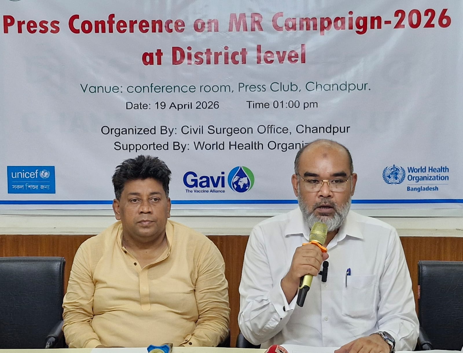 চাঁদপুর জেলা স্বাস্থ্য বিভাগের আয়োজনে, বিশ্ব স্বাস্থ্য সংস্থার পৃষ্ঠপোষকতায় চাঁদপুরে জেলা পর্যায়ে হামের টিকা ক্যাম্পেইন উপলক্ষে সংবাদ সম্মেলন অনুষ্ঠিত হয়েছে।