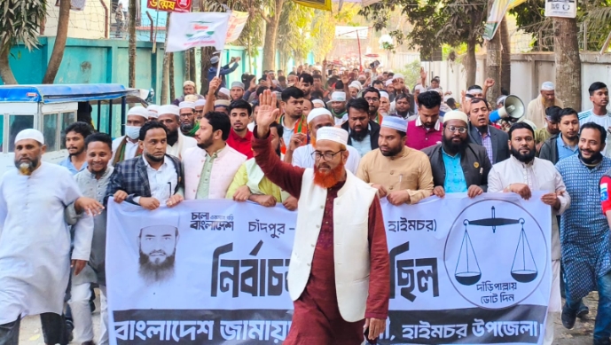 বাংলাদেশ জামায়াতে ইসলামী হাইমচর উপজেলা শাখার উদ্যোগে এক নির্বাচনী বিশাল গণমিছিল অনুষ্ঠিত হয়েছে।