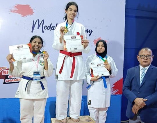 চট্টগ্রামে তৃতীয় শিহান কাপ চ্যাম্পিয়নশীপ ২০২৫ কারাতে প্রতিযোগিতায় চাঁদপুর সোতোকান কারাতে একাডেমি ১১টি পদক অর্জন করেছে। শুক্রবার (১৯ ডিসেম্বর ২০২৫) চট্টগ্রাম রাইফেলস ক্লাবে অনুষ্ঠিত এই কারাতে প্রতিযোগিতায় চাঁদপুর সোতোকান কারাতে একাডেমির সিনিয়র ও জুনিয়র শিক্ষার্থীদের ১৬জন প্রতিযোগী অংশগ্রহণ করে। এর মধ্যে বিভিন্ন ক্যাটাগরিতে মোট ১১টি পদক অর্জনে সফল হন। এটি নিশ্চিত করেন চাঁদপুর সোতোকান একাডেমির প্রতিষ্ঠাতা ও কোচ মো. জসিম গাজী। তিনি জানান, এ প্রতিযোগিতায় চাঁদপুর সোতোকান একাডেমি ১১টি পদকের মধ্যে প্রথম পুরস্কার হিসেবে গোল্ড মেডেল ৩টি, ২য় পুরস্কার হিসেবে সিলভার মেডেল ৩টি ও ৩য় পুরস্কার হিসেবে ব্রোঞ্জ মেডেল ৫টি অর্জন করে।
