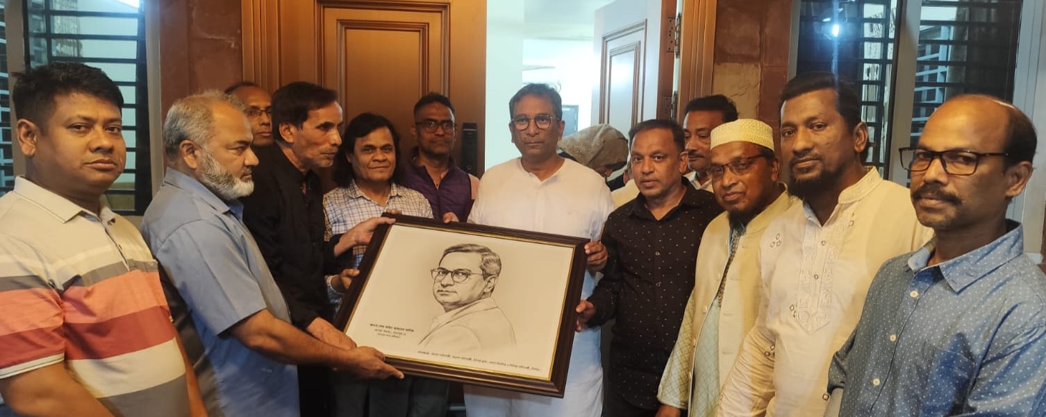 চাঁদপুর সদরের এমপিকে পেন্সিলে আঁকা ছবি ও ক্রেস্ট দিয়ে সম্মাননা জানালেন নাট্যশিল্পীরা