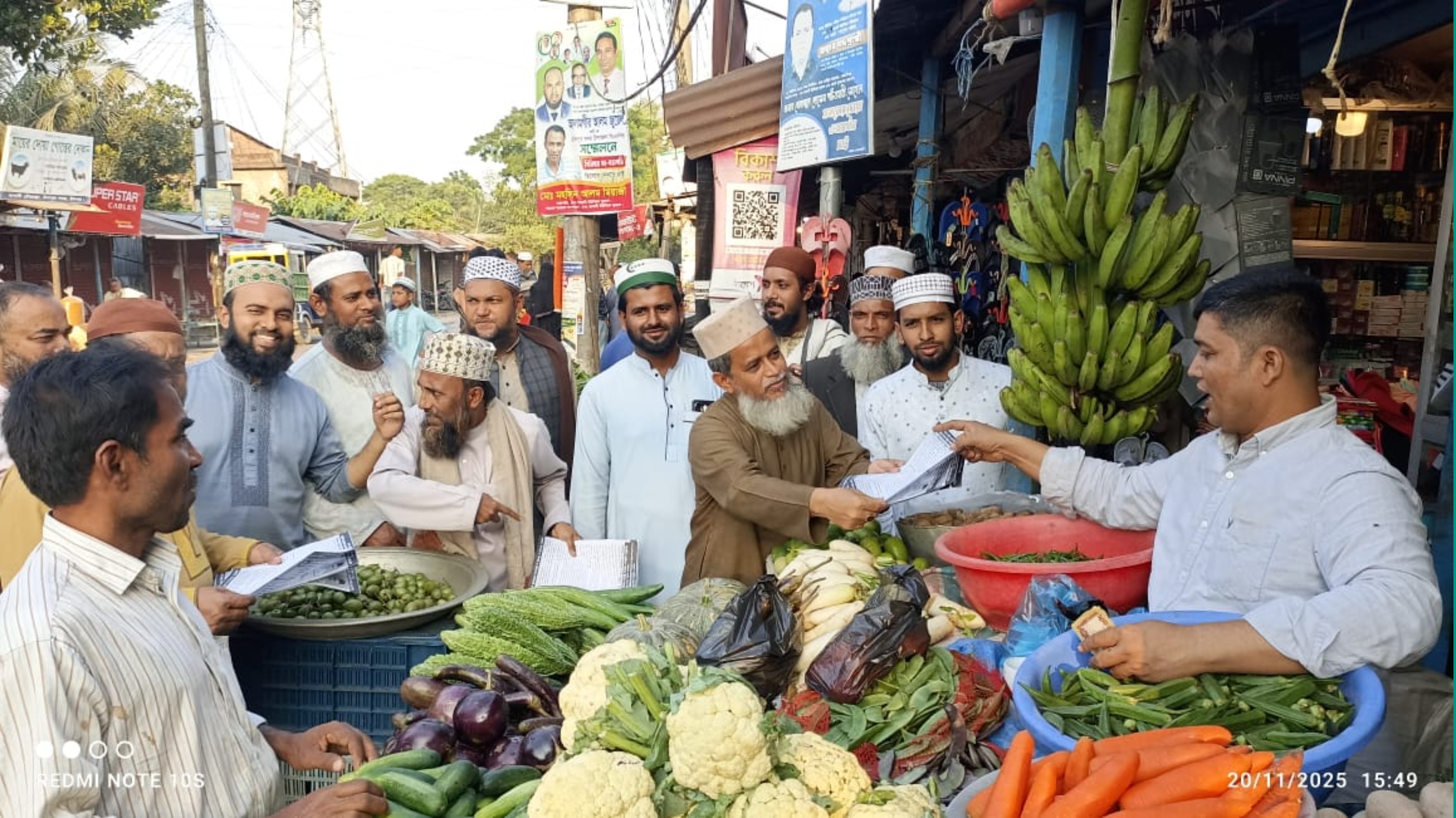বাগাদী চৌরাস্তায় মোমবাতির প্রার্থী আহসান উল্লাহর ব্যাপক গণসংযোগ