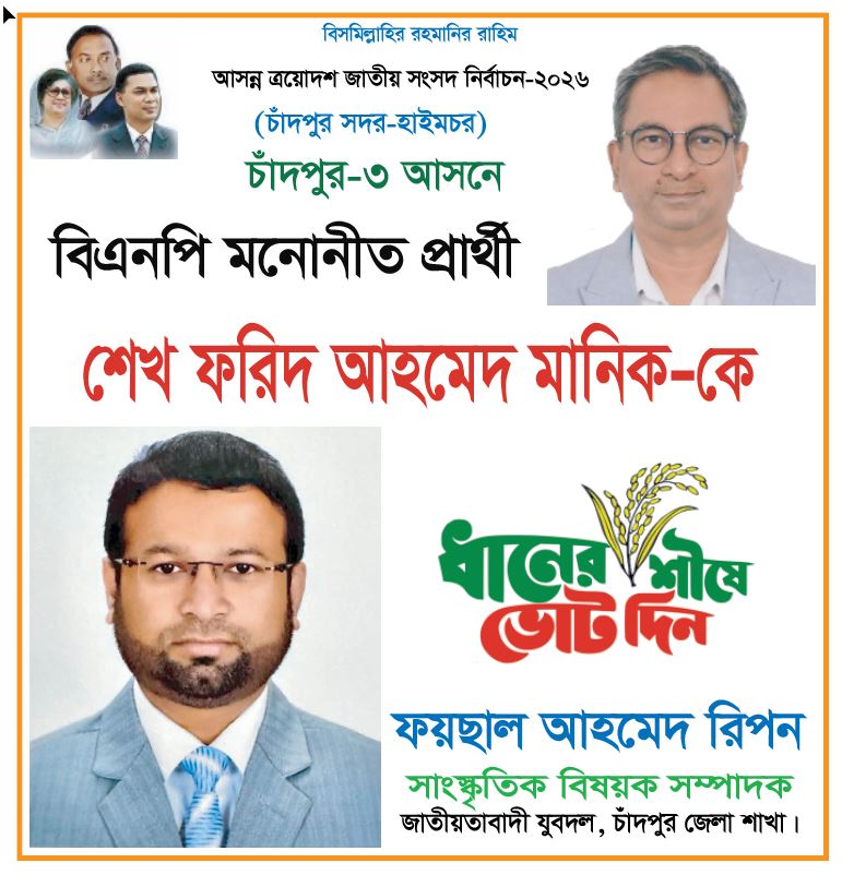 শেখ ফরিদ আহমেদ মানিক কে ধানের শীষে ভোট দিন