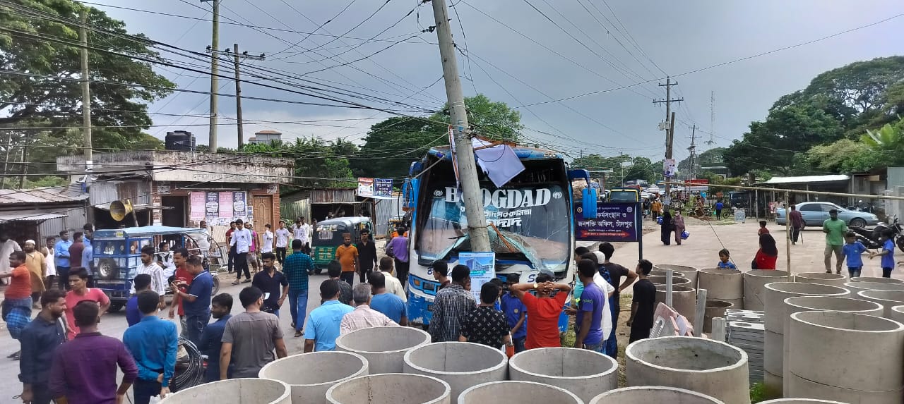 বাবুরহাটে বাস নিয়ন্ত্রন হারিয়ে বিদ্যুতের খুটির সাথে ধাক্কা