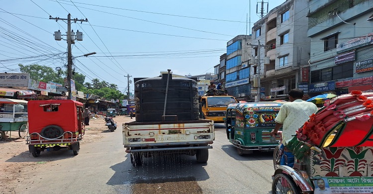 সড়ক শীতল করতে হাজীগঞ্জ পৌরসভার উদ্যোগ
