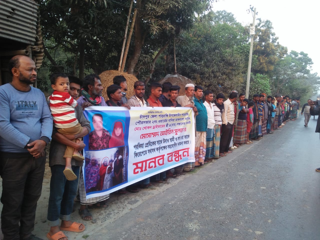 সিলেটে দুই স্বামীর টানাটানি করা নারীকে ফিরে পেতে শাহরাস্তিতে মানববন্ধন