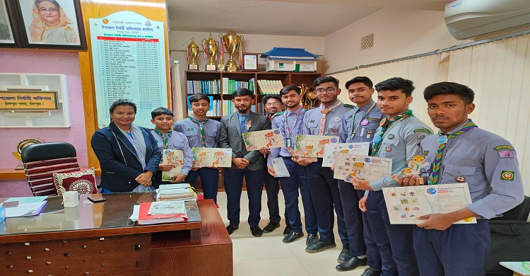 এপিআর স্কাউট জাম্বুরীতে অংশগ্রহণকারীদের শুভেচ্ছা স্মারক বিতরণ
