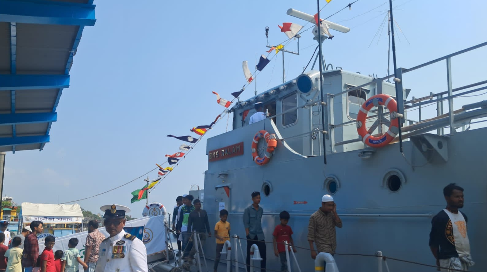 চাঁদপুরে স্বাধীনতা দিবসে দর্শনার্থীরা ঘুরে দেখেছেন নৌবাহিনীর জাহাজ বিএনএস সালাম