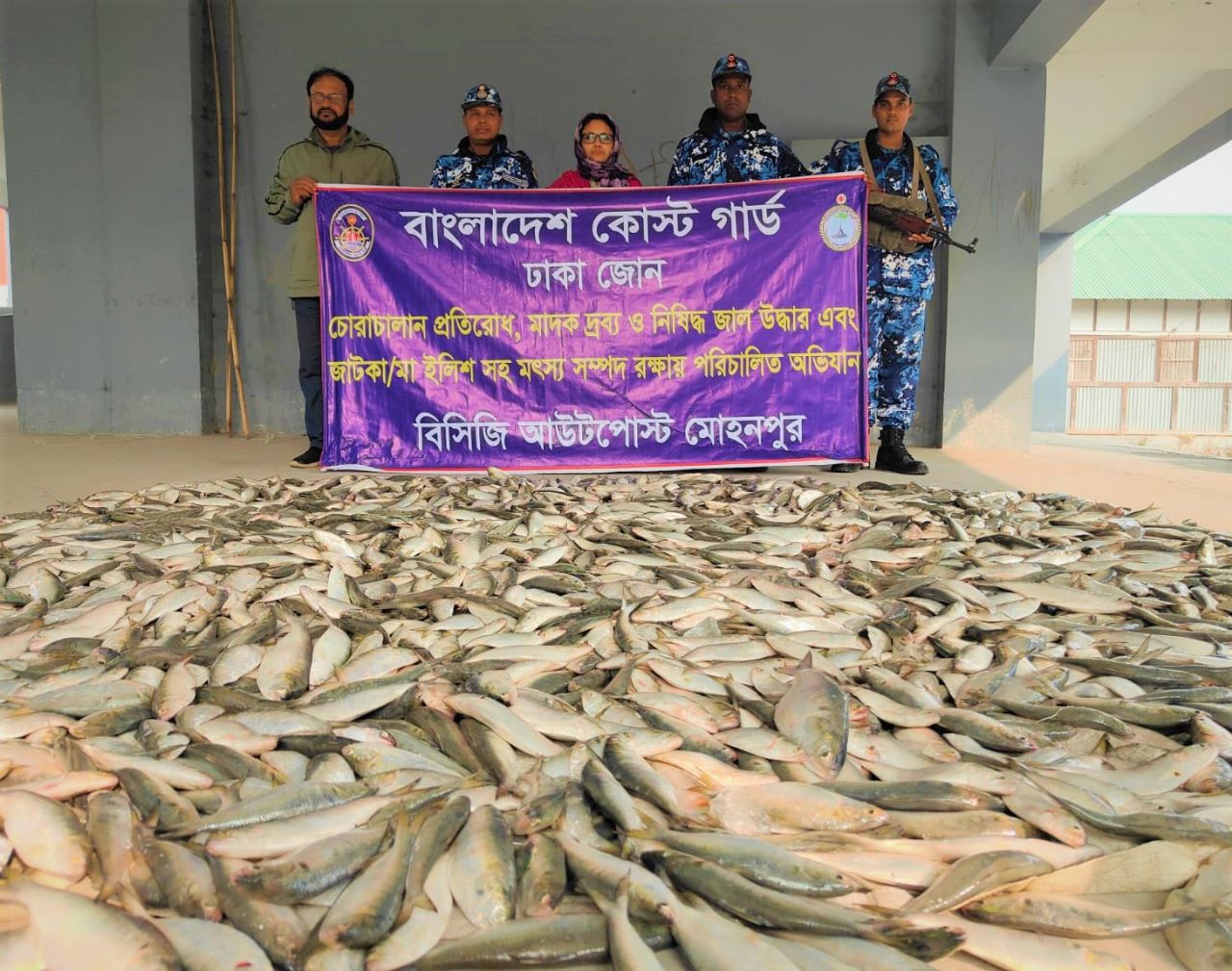 চাঁদপুরে কোস্ট গার্ডের অভিযানে ৩০ মণ কেজি জাটকা ইলিশ মাছ জব্দ