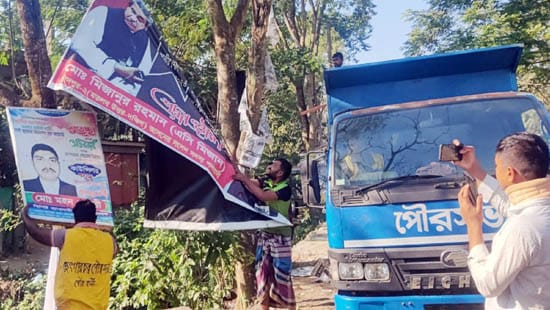 মতলব উত্তরে নির্বাচন সামনে রেখে ব্যানার-বিলবোর্ড উচ্ছেদ