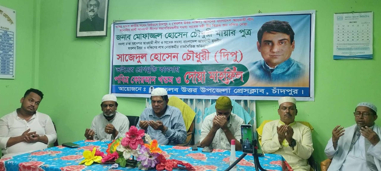 সাজেদুল হোসেন চৌধুরী দীপুর রোগ মুক্তির জন্য মতলব উত্তর উপজেলা প্রেসক্লাবে দোয়া ও মিলাদ
