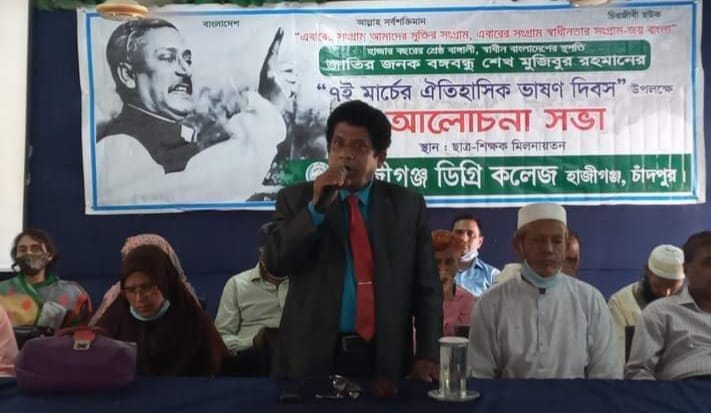 হাজীগঞ্জ ডিগ্রি কলেজে ঐতিহাসিক ৭ মার্চ উপলেক্ষ্য অলোচনা সভা