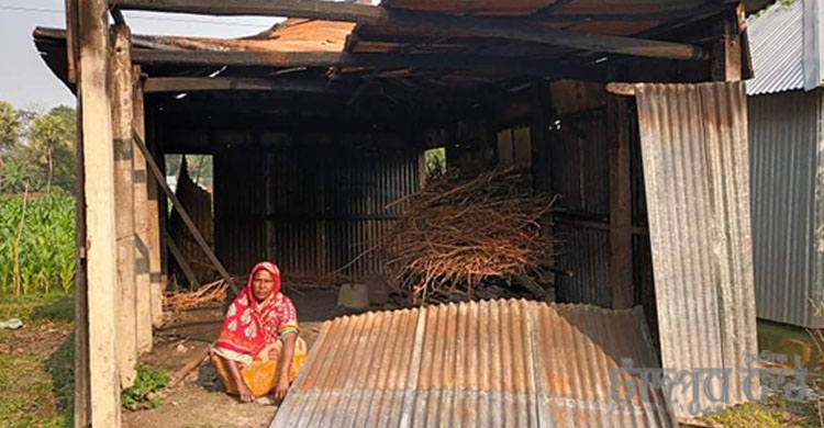 পুড়ে যাওয়া ঘরের জন্য দ্বারে দ্বারে ঘুরছেন অসহায় মা