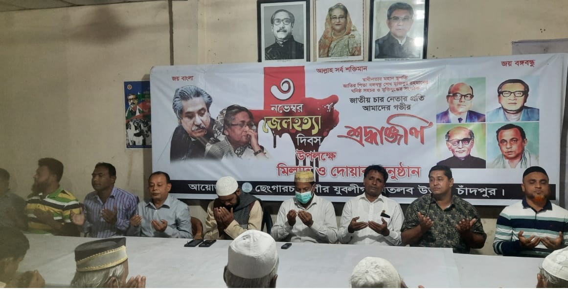 চাঁদপুরে জেল হত্যা দিবসে বঙ্গবন্ধু ও জাতীয় চার নেতার প্রতি আওয়ামী লীগের শ্রদ্ধা