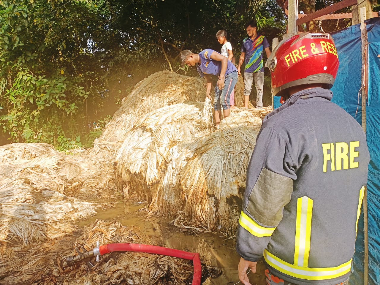 বাবুরহাটে পাটের স্তুপে আগুন : বড় ধরনের বিপদ থেকে রক্ষা