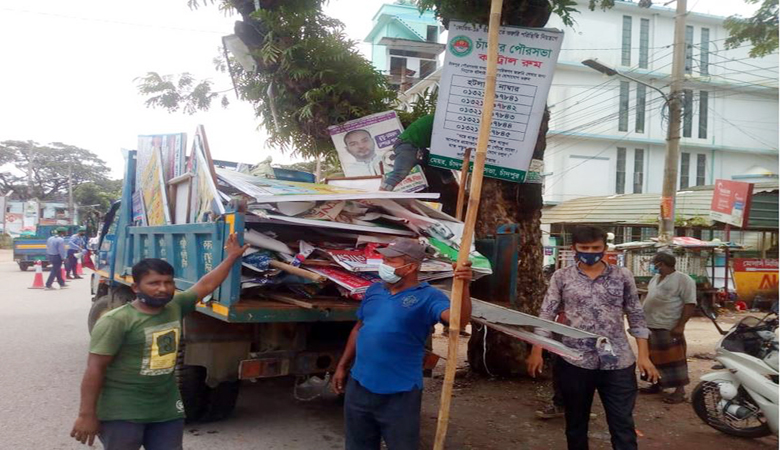 চাঁদপুর পৌর এলাকার অনুমোদনহীন ব্যানার ও ফেস্টুন অপসারণ