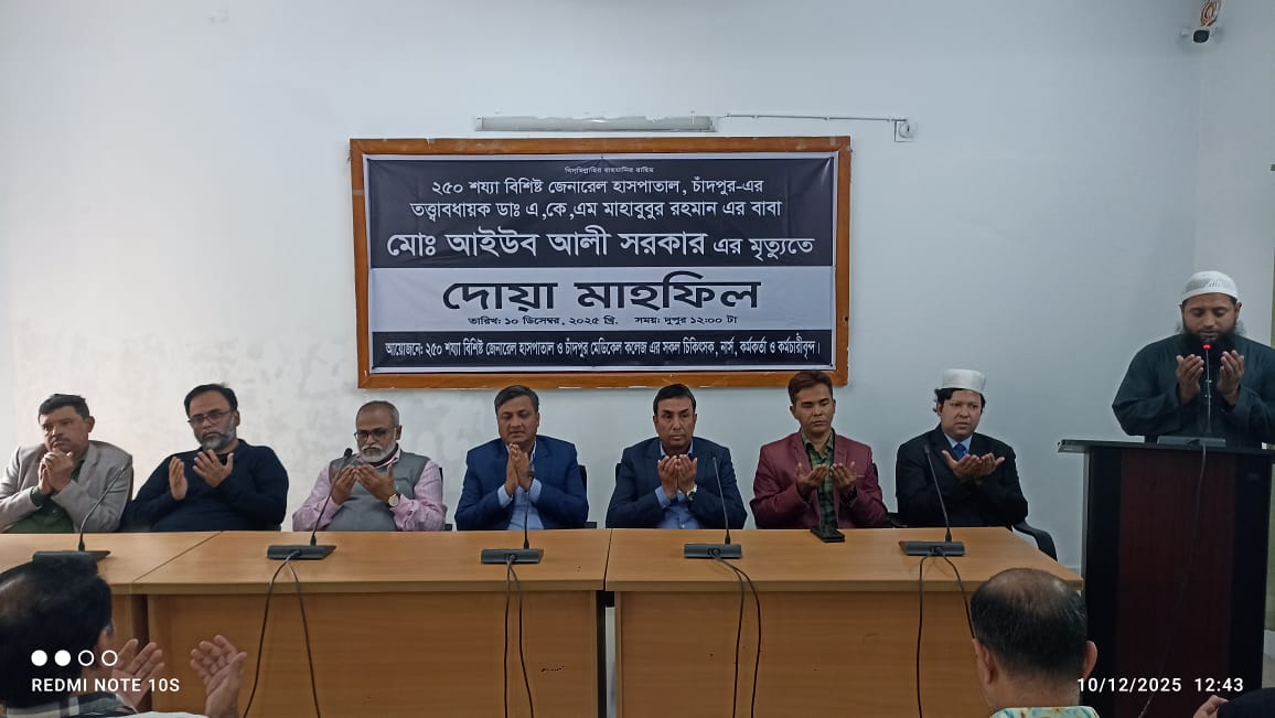 চাঁদপুর সরকারি জেনারেল হাসপাতালের তত্ত্বাবধায়কের বাবার মৃত্যুতে দোয়া মাহফিল