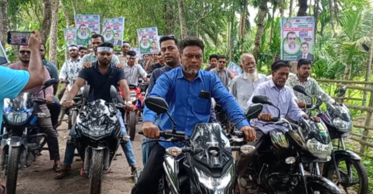 ফরিদগঞ্জে এম এ হান্নানকে ধানের শীষের মনোনয়নের দাবিতে মোটরসাইকেল শোডাউন