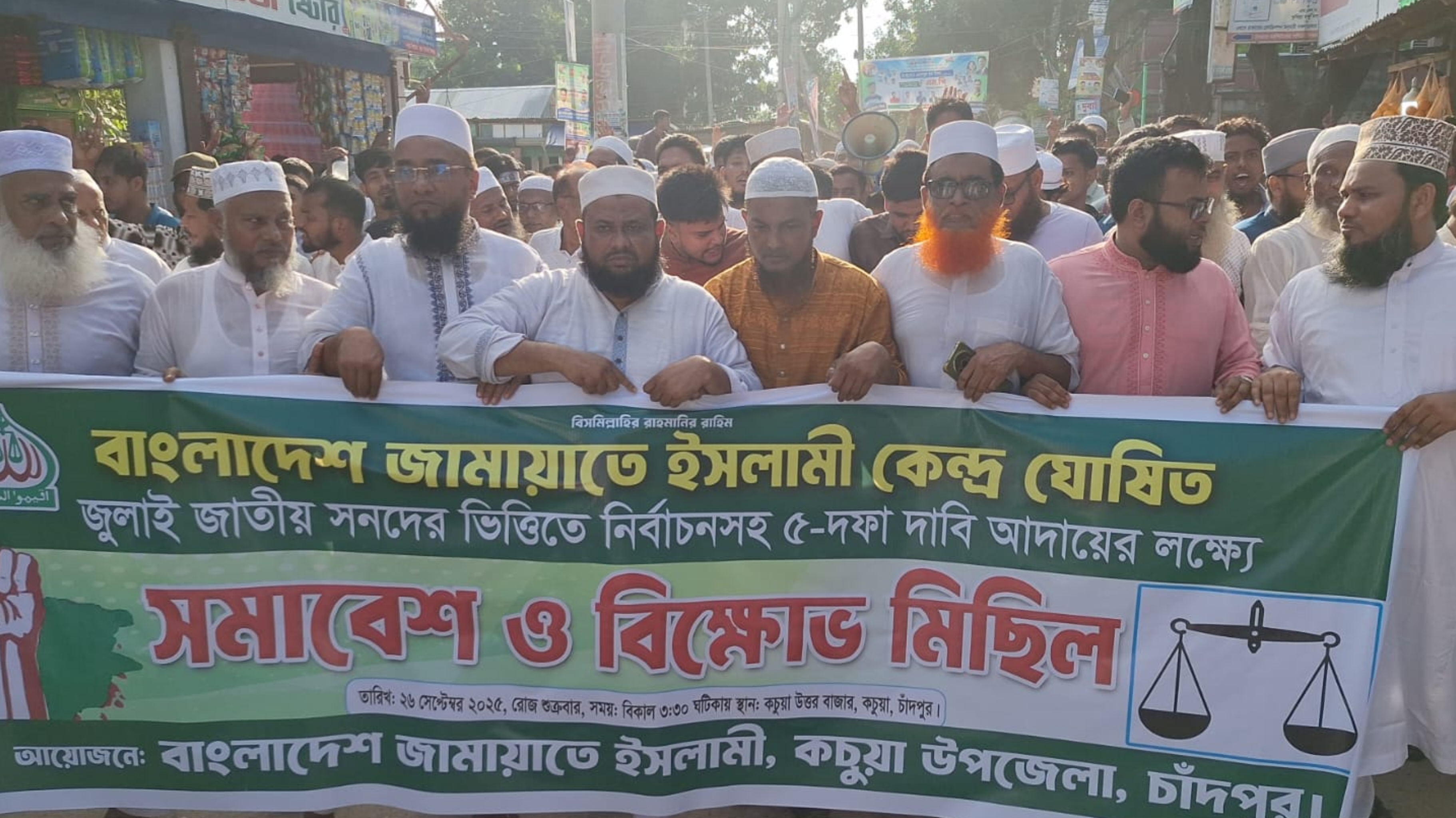 কচুয়ায় জামায়াতে ইসলামীর বিক্ষোভ মিছিল ও সমাবেশ