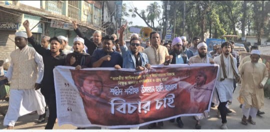 ইনকিলাব মঞ্চের মুখপাত্র শরিফ ওসমান হাদিকে গুলি করে হত্যার প্রতিবাদে ও হত্যকারীদের বিচারের দাবিতে ফরিদগঞ্জে জুলাই আন্দোলনের সম্মিলিত ছাত্র-জনতা বিক্ষোভ মিছিল, সমাবেশ ও দোয়া অনুষ্ঠান করেছে। শুক্রবার (১৯ ডিসেম্বর ২০২৫) বাদ জুমা ফরিদগঞ্জ বাসস্ট্যান্ড থেকে মিছিল শুরু করে উপজেলা সদরের গুরুত্বপূর্ণ সড়ক প্রদক্ষিণ করে থানার মোড়ে এসে সমাবেশে মিলিত হয়। বক্তব্য রাখেন ঢাকা ইনকিলাব মঞ্চের আবু সালেহ ওবায়দুল্লাহ, ফরিদগঞ্জ উপজেলার আতিক হোসেন, মাহবুব রাব্বানী, জিহাদুল ইসলাম, মাওলানা নজরুল ইসলাম, ঢাকা বিশ্ববিদ্যালয়ের মেধাবী ছাত্রনেতা ও সাবেক ভিপি প্রার্থী জামাল উদ্দিন মো. খালেদ, মুফতি আনোয়ার হোসেন ও পৌর যুবদলের সভাপতি ইমাম হোসেন।
