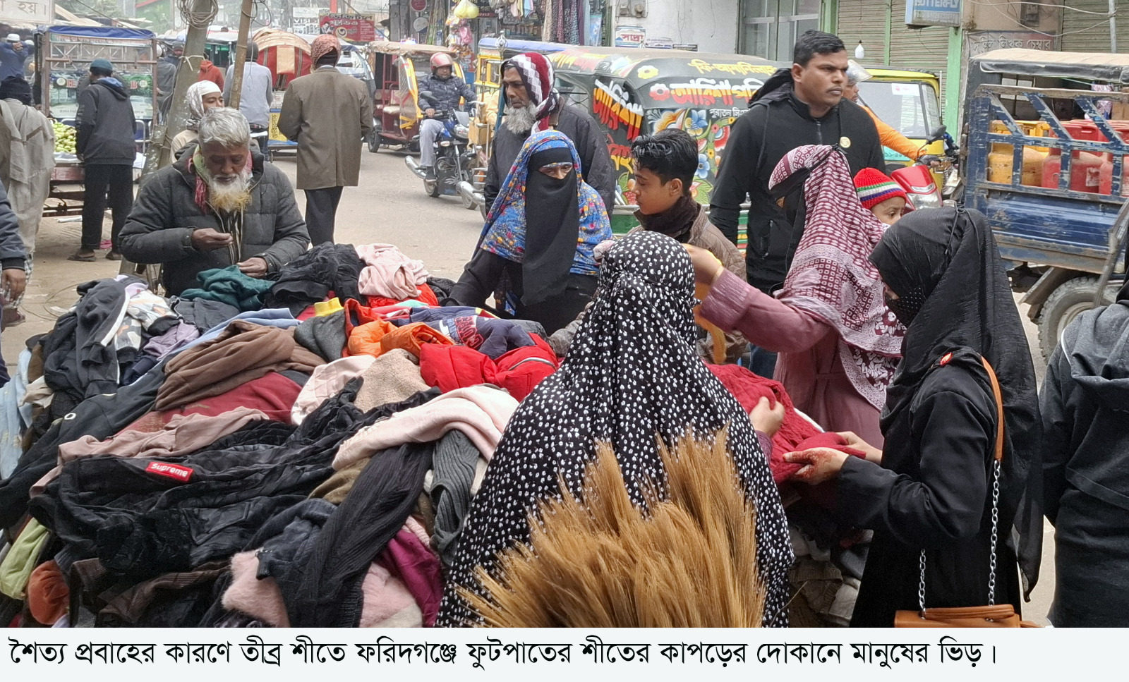 ফরিদগঞ্জে গত কয়েকদিনে তাপমাত্রা নেমে এসেছে প্রায় ১৩ ডিগ্রি সেলসিয়াসে। হঠাৎ শীত বাড়ায় ফুটপাতের দোকানগুলোতে ক্রেতার চাপ বেড়েছে, পাশাপাশি কিছু কিছু পোশাকের দামও বেড়েছে বলে ক্রেতাদের অভিযোগ। সামনে শীত আরও বাড়লে ফুটপাতের বাজারে কেনাবেচা আরও বাড়বে বলে ধারণা করছেন সংশ্লিষ্টরা। এতে স্বল্প আয়ের মানুষ প্রয়োজনীয় শীতবস্ত্র কম দামে পেলেও দাম নিয়ন্ত্রণে রাখার বিষয়টি নজরদারির দাবি জানিয়েছেন অনেকেই।