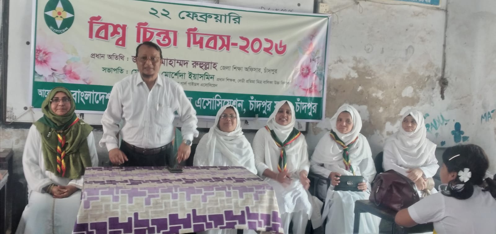 বাংলাদেশ গার্ল গাইডস্ অ্যাসোসিয়েশন চাঁদপুরের আয়োজনে বিশ্ব চিন্তা দিবস উদযাপিত হয়েছে। রোববার (২২ ফেব্রুয়ারি ২০২৬) সকাল ১১টায় চাঁদপুর শহরের মাতৃপীঠ সরকারি বালিকা উচ্চ বিদ্যালয় হল রুমে এ অনুষ্ঠান অনুষ্ঠিত হয়।