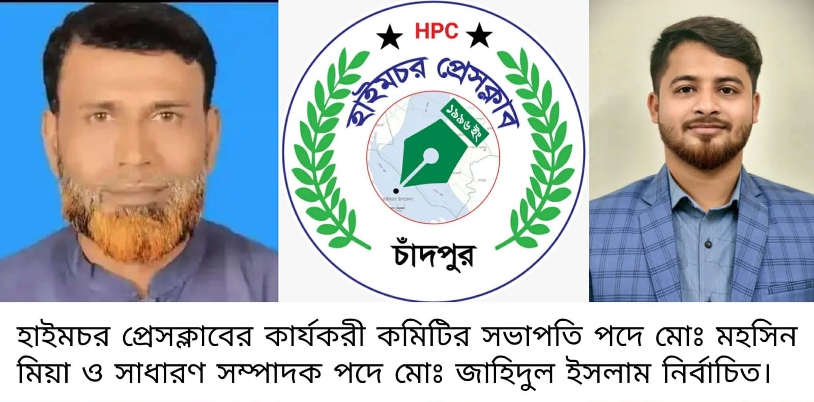 হাইমচর প্রেসক্লাব প্রতিষ্ঠার পর এই প্রথম আনন্দঘন ও উৎসবমুখর পরিবেশে কার্যকরী কমিটির নির্বাচন অনুষ্ঠিত হয়েছে। নির্বাচনে বিপুল ভোটে সভাপতি নির্বাচিত হয়েছে মো. মহসিন মিয়া ও সাধারণ সম্পাদক নির্বাচিত হয়েছেন মো. জাহিদুল ইসলাম।