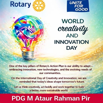 রোটারি নেতাদের মতে, আজকের প্রতিটি মৌলিক আইডিয়া বা ধারণা আগামীর পৃথিবীকে বদলে দেওয়ার ক্ষমতা রাখে। তাই সৃজনশীলতা কে কেবল দিবস পালনের আনুষ্ঠানিকতায় সীমাবদ্ধ না রেখে একে একটি জীবনদর্শন হিসেবে গ্রহণ করার মাধ্যমেই একটি সমৃদ্ধ ও বৈষম্যহীন ভবিষ্যৎ গড়া সম্ভব।