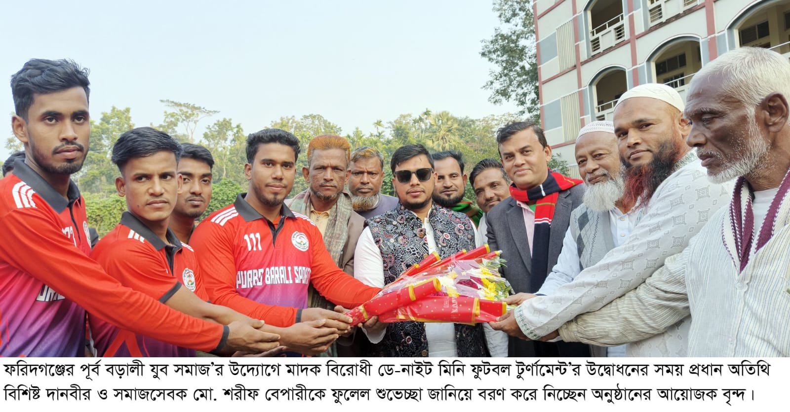 ফরিদগঞ্জের পূর্ব বড়ালীতে মাদকবিরোধী ডে-নাইট মিনি ফুটবল টুর্ণামেন্টের উদ্বোধন